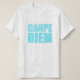 Typographic design of Carpe Diem with abstract waves. Blue Carpe Diem shirt.
