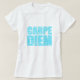 Typographic design of Carpe Diem with abstract waves. Blue Carpe Diem shirt.