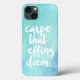 Get it! Seize the day with this pretty phone case featuring an aqua watercolor background and white brushstroke text. Also available in additional colours -- check out our shop!