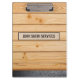 Got a hammer in hand and a passion for transforming homes? This clipboard is a great advertising tool! Featuring a wood panelling background design that screams "professional" and "masculine," this set is all about getting your handyman or carpentry services noticed. Whether you're the go-to guy for home renovations, repairs, installations, or even painting and restoration—this clipboard shows off your professionalism when you use it on the job or meeting up with a client. Get ready to show off your skills and make your brand the first name that comes to mind when anyone needs a fix around the house. Time to let the world know you're the expert they need!