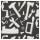 Making projects for someone who is in the carpentry business , a handy man or similar, this is just the thing a collection of all the tools you might find in their toolbox; with hammers, drills, spanners, nuts and bolts etc in white silhouettes on black.