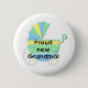 A baby carriage in blue, green, and yellow and text that reads "Proud New Grandma" on baby announcement buttons.