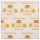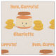 Fabric with a smiling jar of carrot baby food. This cartoon illustration includes stacks of sliced carrots. The design includes a customisable name and the words “Yum, Carrots!”