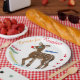 Festive Reindeer food Christmas plate to leave out on Christmas Eve for Santa's Reindeer. Carrots for Reindeer and Love written in orange and red colour script. Insert up to 5 Names in colourful colours of blue, red, green, yellow. If less Names are needed, backspace over sample template text. My cartoon character Super Snow the Blue-eyed Reindeer is a cute button buck white-tailed deer with white spots, and a red and blue nose in a jingle bell look. Visit my store for Cookies for Santa Personalised Plates, and Milk for Santa Mugs, Carrot Juice for Reindeer Mug and more items. Original Artwork and Design © 2016 TamiraZDesigns.