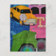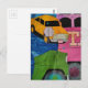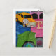 Cars and Trucks yellow green pink blue collage Postcard