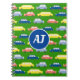 Cute, cartoon, colourful car parade notebook for school boy with giant initials.