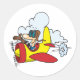 This design is a cartoon aeroplane. The aeroplane is red and yellow with a pilot. This cartoon aeroplane design looks great on this Stickers