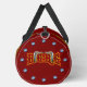 I actually had been searching other sites for a duffle gym bag and I couldn't find any. This one is just what I was looking for with all the features. The inside zip pocket, the outside mesh pocket and LOTS of room inside. Love the printing. Really like how the floral print turned out.
