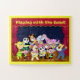 A fun and playful jigsaw puzzle with 30 oversized pieces to make it easier to pick out and put together all of the cartoon animals in the Band. The animals include an Elephant, Panda, Lion, Tiger, Monkey and Giraffe. This simple puzzle makes a great gift for kids.