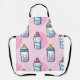 A cute baby bottle cartoon for the apron in a lively shade of pink makes a great gift for the baby shower and for the little girl's soon-to-be parents who will be washing bottles and feeding bowls for the next year.