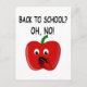 Funny image of a red cartoon apple. Back to school. Oh, no!
