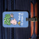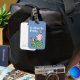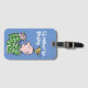 Birdwatcher luggage tag. Birding holidays. Birding vacations. "I'd Rather be Birding." Cartoon bird watcher with binoculars has a bird standing on his head!