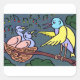 Cartoon of birds in a nest and on a branch singing with music notes.