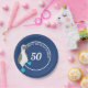 These custom paper birthday party plates are ready to be personalised with your own message and with the age of the birthday boy or girl making them perfect for milestone birthday celebrations for bird lovers. They feature a cartoon style illustration of a cute blue-footed booby bird set against a blue background.