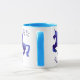 This adorable blue shaded unicorn is running up between the stars. Blue stars are above and beneath. The design is repeated on both sides. image ©T.A.Paxton, I've chosen the version with powder blue rim and handle to accent the blue unicorn and stars but the mug is fully customisable with room for a name or changing of style.