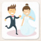 Cartoon Bride & Groom Dancing Wedding Just Married Square Paper Coaster