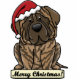 Cute Brindle Mastiff Christmas Ornament features the giant dog breed wearing a red Santa hat. The sign underneath him reads, "Merry Christmas!" Cute English Mastiff Xmas ornaments for dog owners! This is the brindle coat colour.