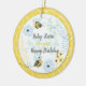 Cartoon bumblebees on a background of blue, yellow ceramic tree decoration