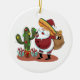 Cartoon cactus and Santa Claus wearing a sombrero Ceramic Tree Decoration