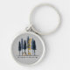 Need a little mental escape to decompress from the daily grind? Why not go off-the-grid and head out into the woods and sleep under the stars. This whimsical cartoon camping keychain features a pup tent pitched under tall pine trees in front of a cosy campfire with swirling wisps of smoke.