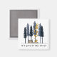 Need a little mental escape to decompress from the daily grind? Why not go off-the-grid and head out into the woods and sleep under the stars. This whimsical cartoon camping magnet features a pup tent pitched under tall pine trees in front of a cosy campfire with swirling wisps of smoke.