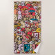 Cartoon Caracter Hand Drawn Toss Pattern Kids Beach Towel. Colourful pattern with different funny and fun hand-drawn characters. Great for kids and teens.