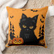Cartoon Cat and Pumpkins Under Full Moon Cushion