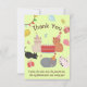 Send the sweetest thank-you with this Cartoon Cats Birthday Party Thank You Card, designed to perfectly complement a fun kitty-themed celebration. The front features adorable cartoon cats in party hats—one licking cream off its paw and another beside a birthday cake—surrounded by cheerful party elements like balloons, serpentines, gifts, and a colorful banner on a soft green background. At the top, it reads “Thank You”, and below the illustration a playful editable message says, “I loved the cake and the presents too, but my favorite part was seeing you!” The back of the card is blank, giving you plenty of space to add a heartfelt or playful message, making it perfect for kids’ birthdays and cat-loving families.