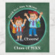 A cute wine label featuring two cartoon kids on a chalkboard and blackboard background. Great to wine down after a busy school year and a beautiful gift for a teacher.