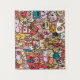 Cartoon Character Hand Drawn Toss Pattern Tapestry. Colourful pattern with different funny and fun hand-drawn characters. Great for kids and teens.