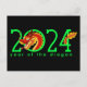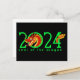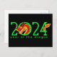 2024 is the year of the dragon! Celebrate with this design featuring "2024" and a cute cartoon dragon weaving in and out of the numbers. On the back of the postcard is a dragon, a red bag, and gold coins.