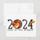 2024 is the year of the dragon! Celebrate with this design featuring "2024" and a cute cartoon dragon weaving in and out of the numbers. On the back of the postcard is a dragon, a red bag, and gold coins.