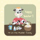 Some cute stickers to seal your envelopes or.and your Easter invitations , with an adorable cow painting Easter eggs .