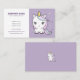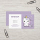 A purple business card with a cartoon cute unicorn for businesses such as makeup artist, babysitting or child care, hairdresser, illustrator, designer, childcare, veterinarian, beautician! Just add a touch of fun to your company!