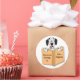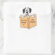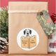 This bookplate template is a round vinyl sticker with a cartoon Dalmatian dog behind an open book. It says, "This book belongs to Sam Diggedy."