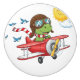 Cartoon Dinosaur Pilot Flying Red Airplane Ceramic Knob