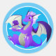 Cute blue stickers featuring a purple dragon ready to enjoy a slice of cake