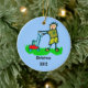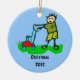 Cartoon Drawing Man Mowing Grass Ceramic Tree Decoration