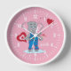 Cartoon Elephant and Hearts Girl Pink Wall Clock