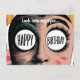 Cartoon face big eyes happy birthday in eyes postcard