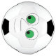 A cartoon man's face with a big nose and round green eyes funny soccer ball!