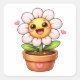 Adorable cartoon flower with a smiling face in a clay pot, featuring soft pastel petals, bright eyes, and cute heart elements. Perfect for stickers, kids designs, nursery decor, and kawaii-themed projects. High-quality, cheerful illustration isolated for creative use in digital and print media.