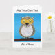 Design is brilliant - there is a male version and a female version of this cartoon and I bought both! You can personalize all the type on this card. I love these cartoon cards from Le Grand Art. I will be coming back to buy more. So pleased with the quality. Great colour and good quality cardstock.
