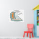 A fox on a surfboard, talking himself very seriously. A large wave is curling up behind him. The fox is tall and thin and he is standing as if he has a human body.