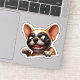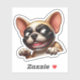 This playful design features a cartoon French Bulldog peeking around a corner with a mischievous grin. The vibrant colours and exaggerated features give the illustration a fun and energetic vibe, making it a perfect addition to any car window or other smooth surface. This eye-catching sticker is sure to bring a smile to faces and spark conversations wherever it goes.
