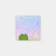 A cute frog with big eyes is peeking through tall, wispy grass in a field on this fun notepad. Pretty dragonflies of varied size are flying above the frog's head against a blue / pink sky - personalise with her name - by katz_d_zynes