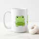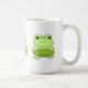 Funny cartoon frogs in two shades of green with big eyes and a big grin.