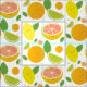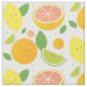 Fabric that features a design of smiling citrus fruit (lemons, limes, grapefruit, and oranges). Choose the fabric type that is right for your project, select as many yards as you need, and then add this fabric to your cart.