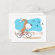 This Postcard features a cartoon illustration of funny Puppy riding the bicycle along the countryside road. Blue sky and flying birds above the the happy little dog. Great postcard for everyone, especially if he or she is a dog lover and bike fan.