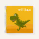 The front of this Notebook features an illustration of the cute cartoony Dinosaur and personnalisable name. Back of the Notebook features an Illustration of the Jurassic woodland and prehistoric hot Sun. Everything is designed in the warm colors: yellow, orange and green. Personalize the kid's name at the top right corner of the cover. Great addition for the new school year. If you need help in personalization of this notebook, don't hesitate to contact me via Zazzle.